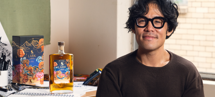 “With the 2026 Year of the Horse design, I wanted to highlight the importance of natural elements, water and land shared in the mythos of both Asian and Australian cultures. From drawn sketches to digital applications, I visualised elements of fire, wood and water, all of which are part of the distilling process. The night sky illustration showcases the majesty of Cradle Mountain and abstract paths of journey, connection and travel that matter most at this special time of year.” – Chris Yee